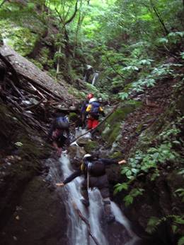 う~ん・・・帰りたい! そういうわけにも行かず 滝を登ることになってしまう。 佐藤さんがリードすることになった。